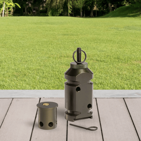 Made from machined aluminum alloy, this device is weather-resistant and reusable at will, with simple components to reload.